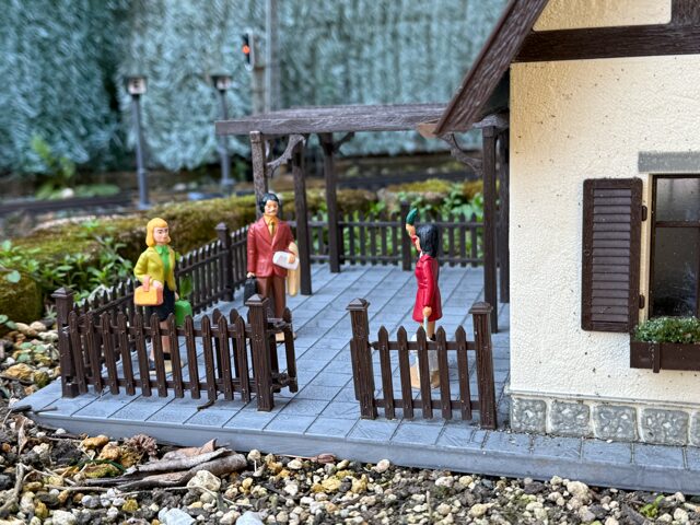 下の写真の家は、土台が付属していましたので、その上にフィギュアを両面テープで固定しました。