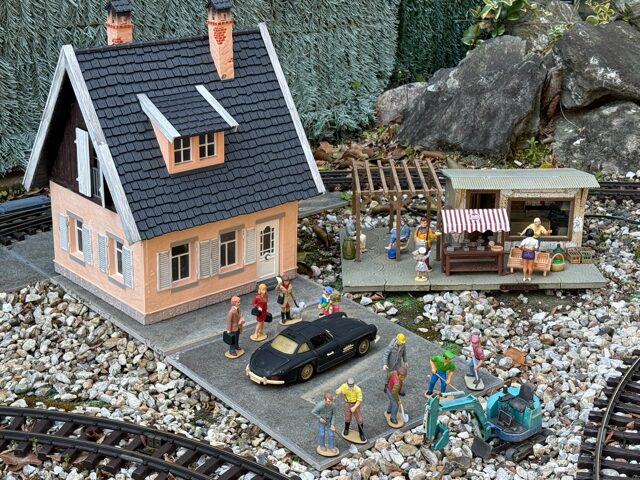 先日、大阪へ行った際に、ショップで家(POLA 331019 Einfamilienhaus)を購入しました。組み立てが終わったので、手持ちのフィギュア、自動車などをとりあえず置いてみました。