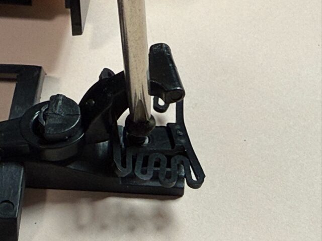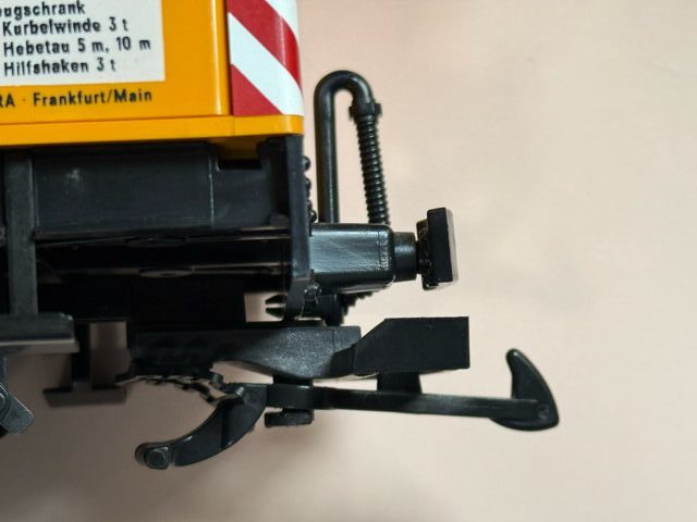 走らせたところ、クレーン車と丸太を積んだ貨車の連結がすぐに外れてしまいましたので、連結器のバネを取り替えました。交換の様子は投稿の下の方にあります。